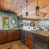 - Kitchen: Countertop - Granite, Freezer, Ice Maker, Island with Sink, Oven - Double, Oven - Gas, Oven Range - Gas, Pantry, Trash Compactor, Wine Refrigerator