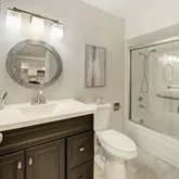 - BATH-PRIMARY INCLUDES: Shower Over Tub, Solid Surface, Tile
