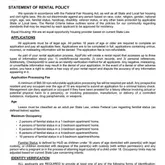 - Lease Conditions: Application Fee, Credit Report, Prior Residence Info., Other