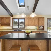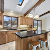 - Amenities Unit: Ceiling Fan(s),Deck,Exercise Room,Kitchen Center Island,Kitchen Window,Main Floor Primary Bedroom,Natural Woodwork,Patio,Skylight,In-Ground Sprinkler,Vaulted Ceiling(s)
