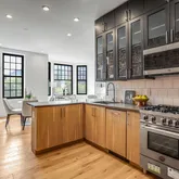 Step through the lovingly restored historic façade into a bright, airy foyer that welcomes you to this exclusive property, home to just 11 extraordinary units. This apartment is brimming with standout features: expansive windows that flood the space with natural light, exposed brick accents, rich wood flooring, and a custom gourmet kitchen equipped with premium Bertazzoni appliances and quartz countertops.