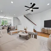 - Interior Features: Breakfast Bar, Ceiling Fan(s), Double Vanity, Eat In Kitchen, High Ceilings, Interior Steps, Kitchen Island, Quartz Counters