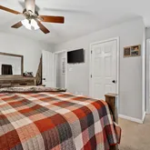 - Master bedroom with access to the deck for morning coffee