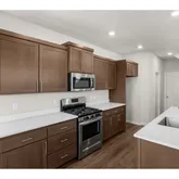 - Kitchen Appliances: Disposal, Free Standing Gas Range, Gas Appliances, Island, Microwave, Pantry, Plumbed For Ice Maker, Quartz, Solid Surface Countertop, Stainless Steel Appliance