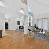 With over 3,300 square feet of thoughtfully designed living space, this home delights with warm hardwood floors, a dramatic gas fireplace, soaring ceilings, and walls of glass that bathe the interior in natural light while framing tranquil views of the spectacular garden. The generous footprint offers versatile space for both everyday living and entertaining, with elegant finishes throughout and a seamless flow from room to room.