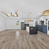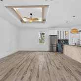 - Interior Features: Ceiling Fan(s), Coffered Ceiling(s), High Ceilings, Kitchen/Family Room Combo, Living Room/Dining Room Combo, Open Floorplan, Primary Bedroom Main Floor, Split Bedroom, Stone Counters, Thermostat, Tray Ceiling(s), Walk-In Closet(s)