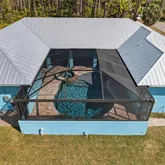 - Pool Features: Gunite, Heated, In Ground, Lighting, Outside Bath Access, Salt Water, Screen Enclosure
