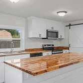 - KF Kitchen Features: Cabinets Factory Built,Counters Wood,Island,Pantry