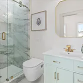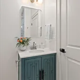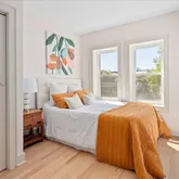 Upstairs, you'll find three comfortable bedrooms, including a light-filled primary suite. The primary suite features a luxurious bathroom with exquisite tiles and thoughtful finishes. A hall bath with a soaking tub and stacked laundry closet completes the upper level.