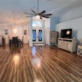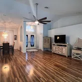 - Interior Features: Built-in Features, Ceiling Fan(s), Eating Space In Kitchen, High Ceilings, Kitchen/Family Room Combo, Living Room/Dining Room Combo, Open Floorplan, Primary Bedroom Main Floor, Solid Surface Counters, Solid Wood Cabinets, Split Bedroom, Stone Counters, Thermostat, Vaulted Ceiling(s), Walk-In Closet(s), Wet Bar, Window Treatments