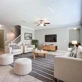 - Interior Features: Ceiling Fan(s), Crown Molding, Eating Space In Kitchen, High Ceilings, Kitchen/Family Room Combo, Open Floorplan, Stone Counters, Walk-In Closet(s), Window Treatments