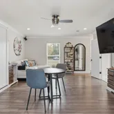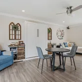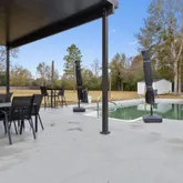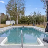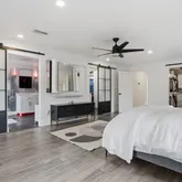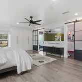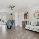 ... and so much more. The kitchen flows effortlessly into an expansive dining area so generous in size it could easily accommodate an additional seating or conversation space. The split-floor plan is ideal for multi-generational living. The south wing houses the stunning primary owner's retreat, a serene sanctuary designed for relaxation and restoration. This space features two custom walk-in closets, plus additional built-in wardrobe storage for prized pieces. The spa-inspired en-suite bath rivals a luxury resort, offering an oversized walk-in STEAM shower with a contemporary flat-bottom soaking tub at one end. Enjoy ambient lighting, Bluetooth-enabled music, and tranquil views of the zen garden through a picture window—all while showering or soaking. The north wing includes two spacious guest bedrooms and a beautifully updated guest bath with walk-in shower. This wing also unveils one of the home's most unique features: an approximately 400-square-foot apartment/in-law suite under the same roof. This private space includes a living area, sleeping area, European-style kitchenette with sink and mini fridge, a stylish full bath with walk-in shower, and a walk-in closet—perfect for guests, extended family, or private accommodations. Additional features include: Large laundry room with half bath and deep storage closets Florida room with brand-new Energy Star windows (currently used as a home gym) Multiple covered patio spaces ideal for outdoor grilling and entertaining, uutdoor fireplace In-ground pool Newly poured concrete slab ready for garage, RV, or boat parking