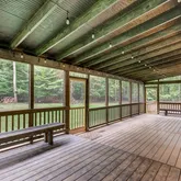 hardwood floors, lots of windows for natural light, a large covered and screened deck, and an in-ground