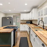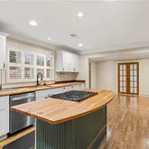 - Kitchen Features: Breakfast Bar, Cabinets White, Kitchen Island, Other Surface Counters, View to Family Room