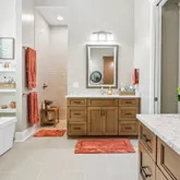 - Interior: Double Vanity, High Ceilings, In-Law Floorplan, Master On Main Level, Separate Shower, Soaking Tub, Split Bedroom Plan, Tile Bath, Vaulted Ceiling(s), Walk-In Closet(s)