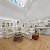 The open living, dining, and kitchen area is ideal for both everyday living and entertaining,...Set on 3.61 private acres just moments from the water, this newly constructed custom ranch offers the rare combination of coastal proximity, modern luxury, and serene privacy in the heart of Marion. Thoughtfully designed for effortless one-floor living, this sprawling home features vaulted ceilings and sun-soaked, open-concept spaces enhanced by wide-plank white oak engineered hardwood floors throughout.