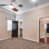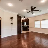 - Interior Features: Crown Molding, Double Vanity, Granite Counters, High Ceilings, Kitchen Family Room Combo, Tub Shower, Window Treatments, Ceiling Fans, Programmable Thermostat