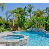 w/walk-behind bar and fireplace, and the formal dining room, complete with butler's pantry, share access through French doors to private rear patio and yard to extend the entertaining area. The gourmet kitchen is open to the family room with fireplace and wet bar, features stainless appliances, granite counters, marble backsplash, island w/5 burner gas cooktop, Sub Zero refrigerator, travertine flooring , walk-in pantry & a spacious breakfast nook with French doors leading to patio and pool area. The sumptuous master suite includes a fireplace, coffee bar, his & hers closets, limestone countertops, jet tub, marble shower and a trellised, private balcony. Additional upgrades include intercom/music system, surround sound, security system, central vacuum, whole-house water filtration system, custom paint, crown molding and shutters throughout. Entertainers will delight in the private, fully usable .95 acre lushly landscaped tropical yard with gas fire ring & built-in stainless BBQ with granite counters, patio trellis w/motorized, retractable awning and remote controlled 3M Quartz pool & spa bordered in natural stone w/waterfalls. Secondary bdrms are spacious. There is also a large grass area, circular turnaround driveway, additional rear paved parking area, fenced yard and a finished 3-car garage with ample enclosed storage & work bench. Buyer to verify property lines, room measurements, home features & Sq Ft prior to COE. PUSD assessment of $55 per $100K per yr. Prop 88 (hospitals) tax of $25 per $100K per yr apply