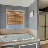 Huge master bedroom with whirlpool tub and walk in shower