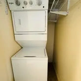 - Appliances: Built-In Microwave, Dishwasher, Exhaust Fan, Oven/Range - Electric, Washer/Dryer Stacked, Refrigerator, Disposal