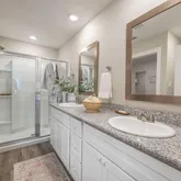- Interior Features: Double Vanity, Granite Counters, His and Hers Closets, Kitchen Island, Open Floorplan, Pantry, Primary Downstairs, Smart Thermostat, Tray Ceiling(s), Walk-In Closet(s)