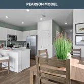 - General Property Information: Public Remarks: The Pearson townhome offers a smart and inviting design that makes the most of every square foot, delivering approximately 1,468 square feet of comfortable living space with three bedrooms and 2.5 bathrooms. This well-planned layout creates a sense of openness from the moment you enter, with the kitchen, dining area, and main living space flowing together to support both daily routines and special gatherings. The kitchen is designed as a true focal point, featuring an oversized bar that provides plenty of room for meal preparation, casual dining, and connecting with guests while you cook. Large sliding glass doors off the living area bring in an abundance of natural light, brightening the home and creating a warm, welcoming atmosphere throughout the day. Upstairs, the primary bedroom serves as a private retreat, complete with a spacious walk-in closet and a well-appointed bathroom with a large vanity. Two additional bedrooms offer flexibility for family, guests, or a home office.