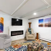 -refinished game/bar basement 2023, including wet bar and electric fireplace