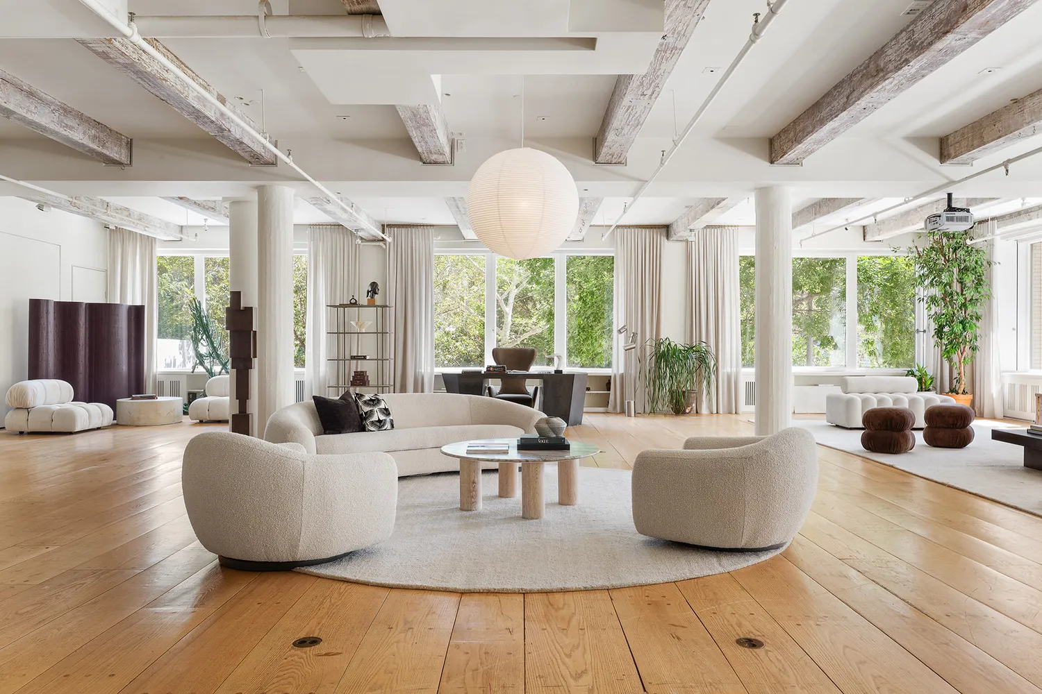 Overlooking the quiet tree tops of Hudson Square’s Spring Street Park comes this enormous corner loft overflowing in authentic, original details. This jaw-dropping 5,100 square foot space is bathed in natural sunlight and tree-top views through 24 oversized windows facing both South and East.