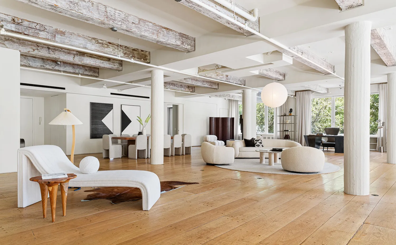 With 11’ original wood-beamed ceilings and fluted plaster columns, the corner living room is one of the single most impressive living rooms in all of Downtown Manhattan. An immense amount of wall space is perfect for displaying a curated collection of artworks for any discerning collector or talented creator.