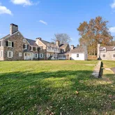 As you drive up the secluded driveway to the grand Main Home, you are surrounded by acres of lush green grass and vibrant foliage. Enter through the front door and you are greeted by sun soaked rooms adorned in original wide plank antique wooden floors, installed over 300 years ago. The vast living room is completed by plaster walls with bull-nosed detail, a gorgeous wood burning fireplace with an original Okie mantel, a wall of large custom built-ins, deep windows, and ample natural light. French doors open to a covered outdoor terrace equipped with endless views of the property and antique beamed ceilings.