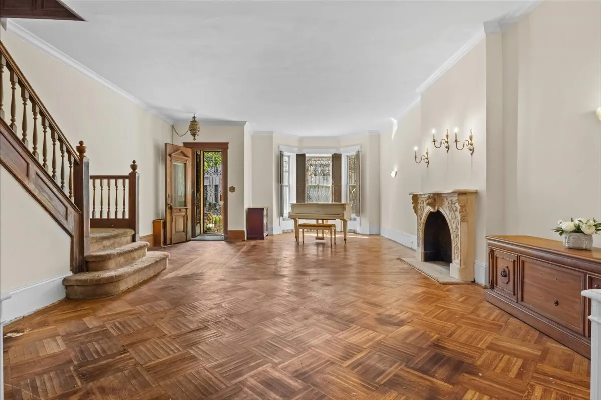 The top floor features three bedrooms and two bathrooms, the primary suite is huge and filled with sunlight and has a gorgeous fireplace, this space could also easily be combined with one of the bathrooms to create a truly special en-suite. The second bedroom is also large and features another fireplace, the third bedroom is a nice size and has a door that leads to a large roof space that would be a perfect outdoor option once completed. Maple Street between Bedford and Rogers is truly one of the most special blocks in Brooklyn, it has been voted Greenest Block in Brooklyn many times and is what you think of when you think of an iconic Brooklyn block. You are only a few minutes from Prospect Park, you are a couple of blocks from the 2/5 train. Access to everything you need whether it be by bike or public transportation is at your fingertips. This is an opportunity to purchase a townhouse and create the home of your dreams.