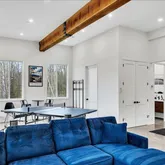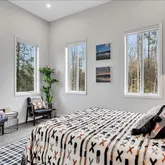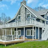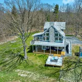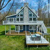 -Lakefront on non motorized lake perfect for SUP, fishing or kayaking. Roll in over the water Floee dock is included. -Chefs kitchen w/ high end cabinetry, quartz countertops and plenty of storage. -Expansive trex deck off the main level with incredible views of Rockefeller Lake and The Catskills. -Wood burning fireplace that has ability to heat the home's main and master suite level. -Additional 600 square foot deck on lower level with 6 person Hot Springs salt water hot tub & mountain views. -Hardy Board siding, Anderson Doors & Windows throughout along with exterior spray foam & interior wall insulation provide exceptional energy efficiency. -Lower level has loft like 12 foot ceilings w/ heated polished concrete floors making it the perfect family/game room hang out. -Whole house reverse osmosis water purification system provides pristine water throughout the home. -Primary Suite featuring high vaulted ceilings & a spa like en-suite bath featuring a steam shower, soaker tub & heated floors. -For safety the home is equipped with a state of the art fire suppressant and alarm system. -Wi-Fi app controlled LG mini split system provides energy efficient heating and cooling throughout the home. Can be sold furnished for an additional cost.