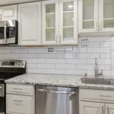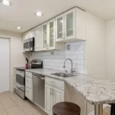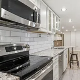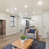 The renovated kitchen is complete with granite countertops, stainless steel appliances, a breakfast bar, and direct access to the private rear entrance....Welcome to this bright and stylish ground-floor residence in the heart of Columbia Heights! Newly renovated with all new flooring, fresh paint, and recessed lighting, this spacious one-bedroom home blends modern updates with warm, loft-inspired character—featuring exposed brick, a decorative fireplace, and open kitchen, living, and dining spaces.