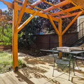 Step outside to one of the home’s most unique features: an expansive fenced rear yard with pergola, shared with only one upstairs neighbor, approximately 600–700 sq. ft. of outdoor space — this oasis is perfect for relaxing, grilling, entertaining, or gardening. Parking behind the home is available for an additional fee.