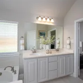 - Room Features: Built-in Cabinets, Dual Sinks, Ensuite Bath, Garden Tub, Natural Stone/Granite Type, Separate Shower, Sitting Area in Primary