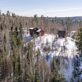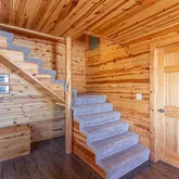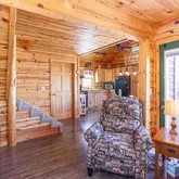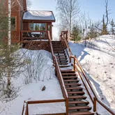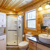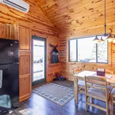 - RoomDescription: Propane free standing fireplace, elevated forest views with abundant natural light, and natural wood throughout.
