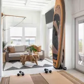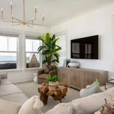 Step outside to your back patio, surrounded by exotic palm trees and tropical plants, where you can enjoy a crackling fire pit and entertaining guests. The home provides direct access to the Sound side beach and water activities, including sailing, jet skiing, paddleboarding, fishing - all right outside your back door.