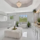 - Interior Features: Built-In Cabinets, Closet Cabinets, Custom Mirrors, French Doors, Laundry Tub, Pantry, Smoke Detectors, Surround Sound Wired, Volume Ceiling, Walk-In Closet, Window Coverings, Zero/Corner Door Sliders, Cable Prewire
