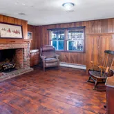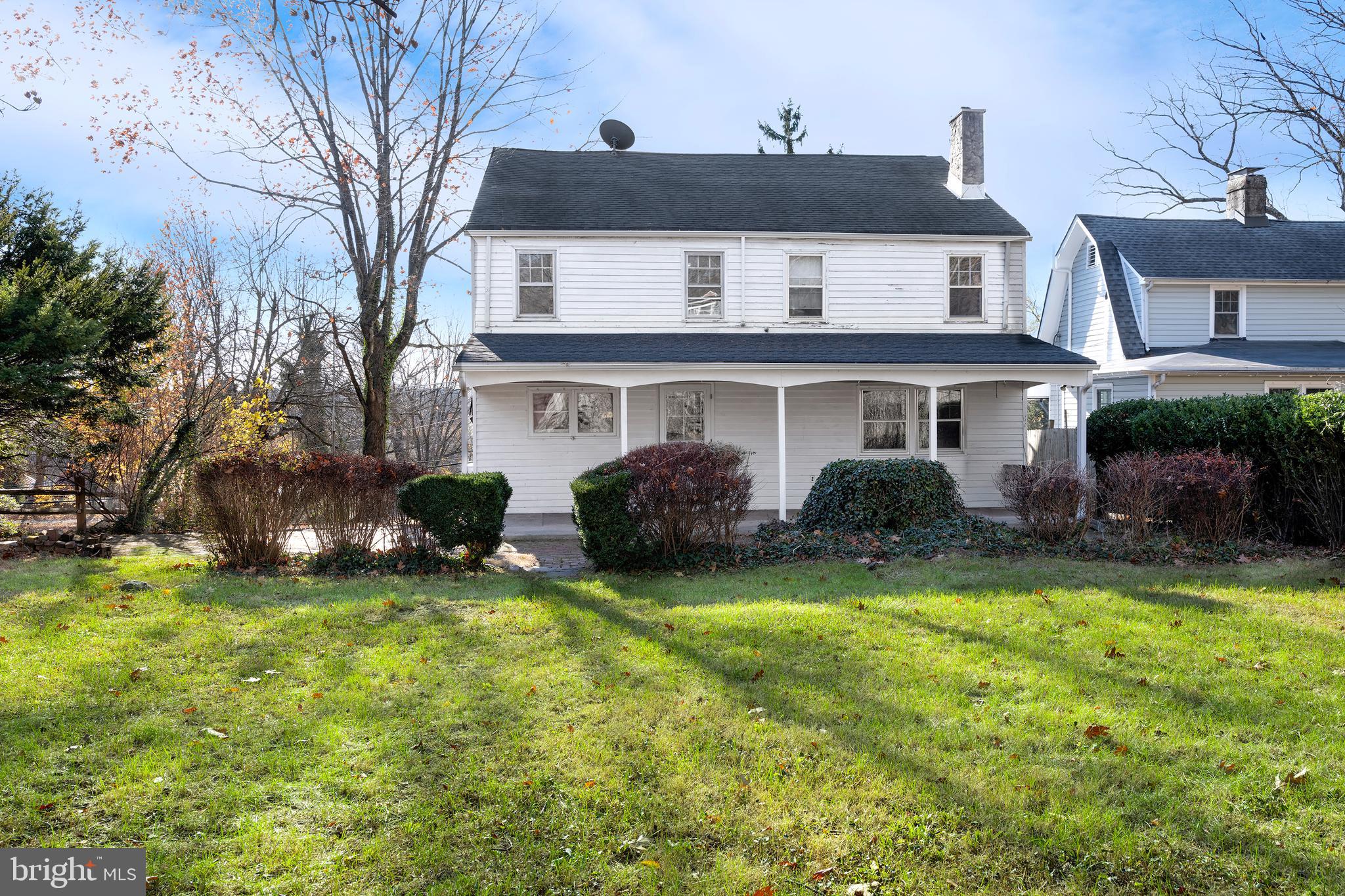 family room, complete with a gas fireplace, exudes so much warmth. Two additional large rooms leading to the covered front porch serve well as living and dining rooms. Pine and oak floors throughout are a nod to its roots, adding texture and authenticity to every room. Step into the fenced backyard, where another covered porch offers a perfect setting for summer dinners. Seasonal views of the Delaware River and the
