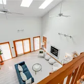 - Interior Features: Bookcases, Built In Features, Bedroom On Main Level, Ceiling Fans, Cathedral Ceilings, Dining Area, Separate Formal Dining Room, Double Vanity, Eat In Kitchen, French Doors Atrium Doors, High Ceilings, High Speed Internet, Kitchen Island, Laminate Counters, Loft, Bath In Primary Bedroom, Pantry, Recessed Lighting, Skylights, Track Lighting, Cable Tv