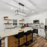 - Kitchen Features: Cabinets White, Kitchen Island