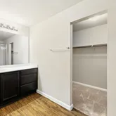- Room Description: En-suite bath with walk-in shower | Single vanity | Storage | Vinyl wood floor.