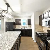 - Room Description: Kitchen is open to Family Room/Living Room | Center Island and Breakfast bar | Granite countertops with tile backsplash | Stainless steel built-in microwave | Dishwasher and disposal | Refrigerator | Gas range and oven | Vinyl wood floor.