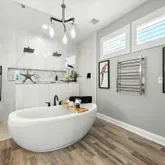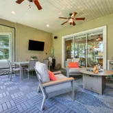 The open-concept floor plan centers around a gourmet island kitchen with stainless appliances, stacked cabinets with lighting, and upgraded fixtures, flowing seamlessly into the dining and living areas. The living room features a fireplace accented with custom built-ins and shiplap detail. A split layout ensures privacy for the renovated primary suite, complete with a spa-inspired bath featuring a new shower, soaking tub, upgraded lighting, and mirrors. The second bedroom/guest room is an on suite to ensure your guests have the most amount of privacy when they visit.
