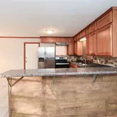 - Kitchen Features: Breakfast Bar, Cabinets Stain, Eat-in Kitchen, Laminate Counters, View to Family Room