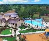 Resort-style pool with lap lanes and a splash pad