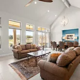 PRE-INSPECTED! Nestled on a rare .259-acre golf course lot in the highly sought-after Falconhead/Spillman Ranch community, this stunning residence offers refined living with panoramic fairway views and timeless curb appeal. A striking stone and stucco exterior, manicured landscaping, and a spacious 3-car garage create an impressive first impression. Spanning 3,634 square feet, the expansive floor plan is thoughtfully designed for both everyday comfort and elevated entertaining. The dramatic great...PRE-INSPECTED! Nestled on a rare .259-acre golf course lot in the highly sought-after Falconhead/Spillman Ranch community, this stunning residence offers refined living with panoramic fairway views and timeless curb appeal. A striking stone and stucco exterior, manicured landscaping, and a spacious 3-car garage create an impressive first impression. Spanning 3,634 square feet, the expansive floor plan is thoughtfully designed for both everyday comfort and elevated entertaining. The dramatic great room showcases a soaring vaulted ceiling, a floor-to-ceiling stone fireplace, and a wall of windows that frame breathtaking golf course views while flooding the space with natural light. Two dedicated home offices provide exceptional flexibility for remote work, creative space, or multi-generational needs. At the heart of the home, the island kitchen blends beauty and function with quartz countertops, built-in seating, abundant cabinetry, and premier stainless-steel appliances. The open layout allows for seamless flow between the kitchen, living, and dining areas — ideal for hosting gatherings large or small. The luxurious primary suite offers a private retreat complete with a tray ceiling, rich wood flooring, a sitting area overlooking the course, and two walk-in closets. The spa-inspired en-suite bath features separate granite vanities, a soaking tub, and a spacious walk-in shower designed for relaxation. Step outside to the covered back patio with its own fireplace — the perfect setting for year-round outdoor living while enjoying peaceful golf course sunsets. The low-maintenance turf yard offers year-round greenery with effortless upkeep. Residents of Falconhead/Spillman Ranch enjoy access to a championship golf course, community clubhouse, scenic trails, park, and playground — all within a premier Hill Country setting. A rare opportunity to own an exceptional golf course property in one of the area’s most desirable communities. Schedule a showing today!