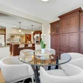 - RoomDescription 1: Entry foyer with coat closet and powder room, formal living room with woodburning fireplace and built-ins, formal dining room, library with built-ins and door to patio, chef's kitchen with breakfast room, mudroom with door to backyard, butler's pantry, family room.