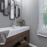 - Room Description: Powder room adjacent to the front entrance, well designed, modern appearance