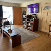 - Living Room: Floor - Wood, Wood Burning Stove, Sliding Door